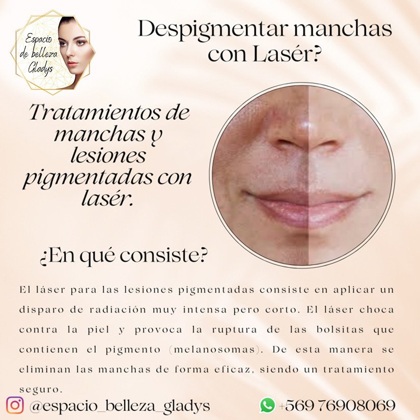 El láser para las lesiones pigmentadas consiste en aplicar un disparo de radiación muy intensa pero corto. El láser choca contra la piel y provoca la ruptura de las bolsitas que contienen el pigmento (melanosomas). De esta manera se eliminan las manchas de forma eficaz, siendo un tratamiento seguro.